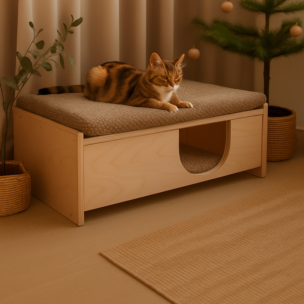 ✓ Spațiu interior pentru pisică + zonă superioară pentru relaxare